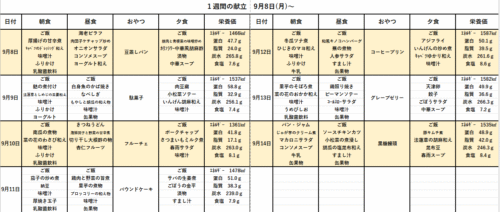 9/1~9/7の献立