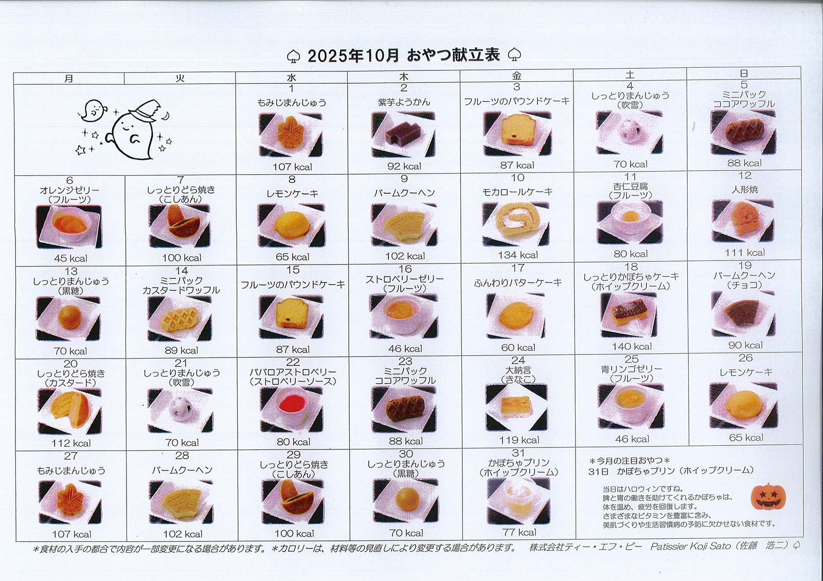 🍎10月の献立です(おやつVer.)🍏【さわやか横浜栄館】