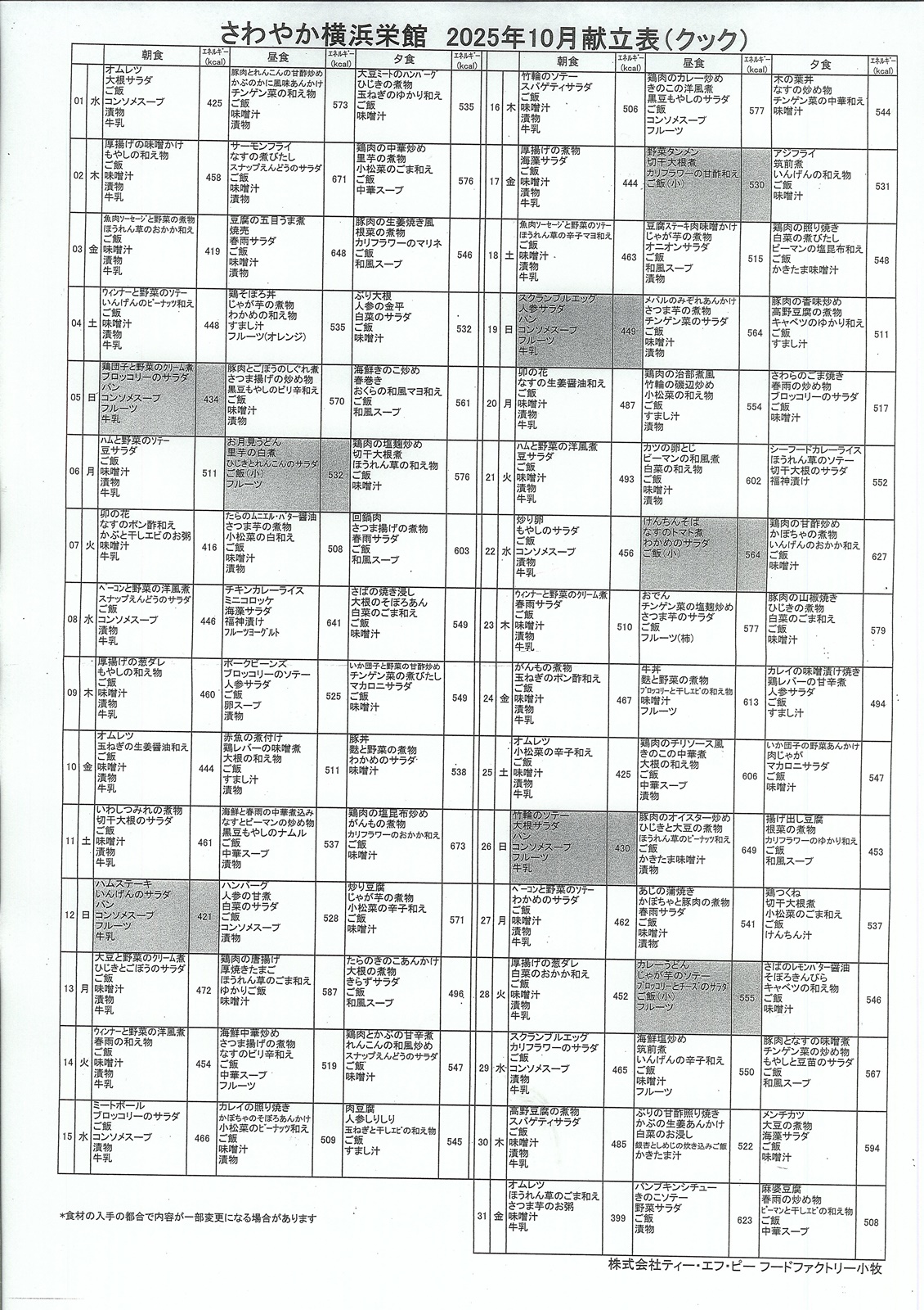 🍚10月の献立です🍙【さわやか横浜栄館】