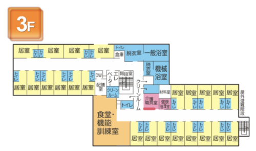 当施設は住宅街に佇む特定施設入居者生活介護60床の施設です。建物は3階建てとなっており全室個室で、ゆとりのある共有スペースの中ではレクリエーションやリハビリにも力を入れています。楽しく生活を送ってもらえるよう職員が色々な事にチャレンジし施設内を盛り上げています。