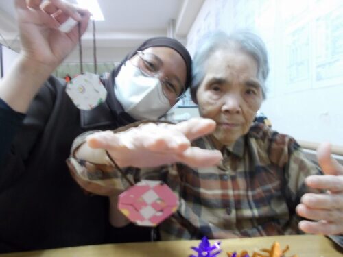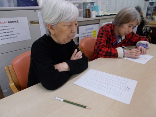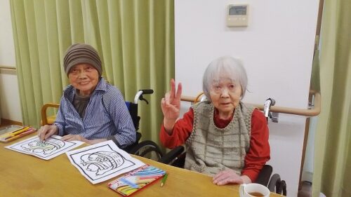多目的レクリエーションでは、書道・将棋・貼り絵など、ご入居者様が自ら選び参加出来るレクリエーション活動を実施しています。また別の週には、季節感を味わって頂けるおやつをご入居者様と一緒に作り、喫茶店をオープンしています。その他、餃子レクリエーション、カラオケ、DVD鑑賞など多彩なレクリエーションを開催しています。