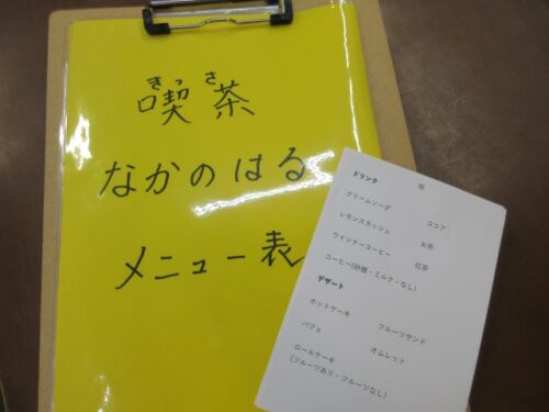 毎週金曜日に喫茶店を開店しています。お好みの飲み物と週替わりのスイーツセットで、午後のひと時をゆっくりと過ごして頂いています。もちろんコーヒーは豆から煎れていて、ホットコーヒーが一番人気です。スイーツは手作りにこだわっています。マスターは施設長。イケメンでないのがちょっと残念ですが、入居者様には大人気です。もちろんお代は頂きません。