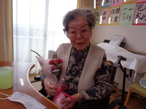 毎月のお誕生会は、入居者様の待ち遠しい楽しみなイベントの一つになっております。祝っていただく方も祝う方も楽しみにされているイベントですので、スタッフが各々思考をこらして盛り上げさせていただいています。