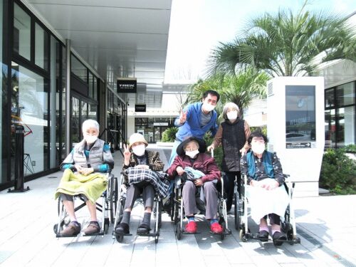さわやか宗像館では天気の良い日は外へ出て「活力朝礼」をしております。朝いちばんの美味しい空気を皆様に吸って頂きながら、「笑顔でさわやか健やかに、慈愛のこころでみんな仲良く」の『宗像館・朝の誓い』を皆様で唱和し朝礼スタートです。朝礼では発声を兼ねたラジオ体操・さまざまなレクリエーションで入居者さまの笑顔が絶えません。