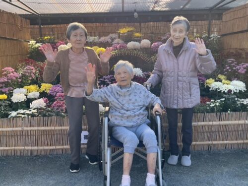 敷地内の小さな畑には、宗像市の「花いっぱい運動」に参加し、毎年「夏季」「冬季」の花が咲きます。お天気の日には花畑横のベンチで「花見」をしたり、施設の3階4階からは花畑や花いっぱいのプランターを眺めて、1年中、色とりどりの季節の花を楽しんでいます。