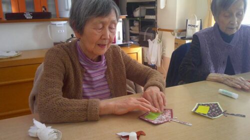 毎月2回、木曜日に習字教室を行なっています。もともと書道をされていた方は、すばらしく達筆に書かれ、他の方も回を重ねるうちに、どんどん上達していく入居者の皆様。初めは久しぶりで緊張される方もいらっしゃいますが、明るくご指導くださるボランティアの先生に褒められ、見事な作品が増えています。