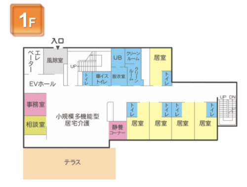 認知症の方が住まわれている「施設」ではなく、お年を召された方々が助け合って暮らす「家」として認識して頂けるようなサービス提供を目指しています。その方その方がお持ちの個性を無くされないように、ありのままを受け入れてあるがままで生活が行える環境作りに力を入れています。職員はご入居者様と同じ情報を共有し、自宅でテレビを見ながら、ご家族と交わしていたような会話が当たり前のように行える雰囲気作りを行うよう心掛けています。