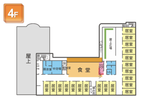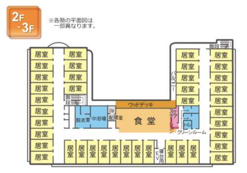 リハビリにおいては、1Fのリハビリ室はじめプライベートを重視した居室やお食事のできる広いホール、そして館外での散歩を通した歩行訓練など取り組む際の環境にも配慮をしております。