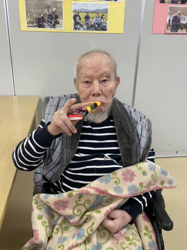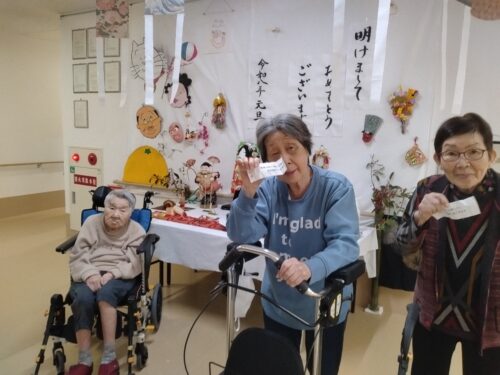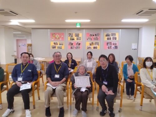 毎月、その月に誕生日を迎えられた入居者様のお祝いを職員、入居者様一緒にお祝いの会を行っています。誕生日のお祝いは、職員手作りの品をプレゼントさせて頂き、その後はボランティアさんや入居者様、職員での歌や踊りなどで楽しいひと時を過ごして頂きます。 開会、閉会の挨拶や司会進行など入居者様に行って頂き、一人でも多くの入居者様に楽しんで頂きたいと思っていますので、飛び入りも大歓迎です。