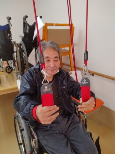 また、個別には、ノルディックウォークや平行棒、リカントバイク(自転車漕)などのマシンを使ってのリハビリで主に歩行訓練を行っています。