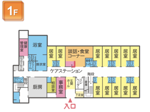 介護士はもちろん、看護師、栄養士、機能訓練士、各分野・多方面から入居者様の健康を管理致します。目の行き届いた体制を確保。ご入居者様の体調に合わせた生活、お食事は季節の物を使用し、減塩食とは思えない3食と手作りのおやつを体調に合わせた形態でご提供させて頂きます。