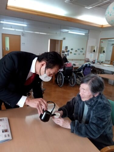 最終日には、施設前に山笠が止まり入居者様へお囃子を披露していただきます。