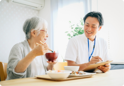 ご自宅にヘルパーがお伺いし、要介護者様の介助をサポートさせていただきます。