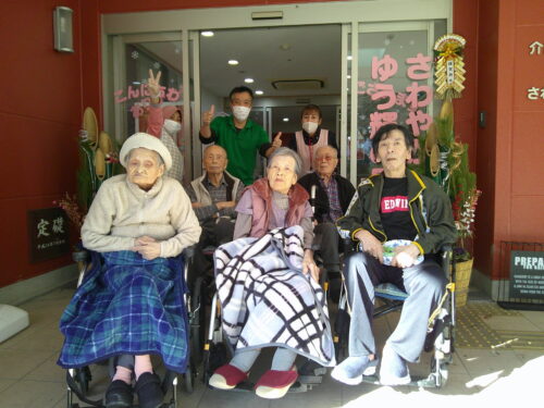 さわやかゆう輝の里は、外食レクも盛んに行われています。月に何度か行われますが、皆さんとても喜ばれています。これまで回転寿司、ラーメン、道の駅までドライブし、コーヒーで一服などが、行われています。