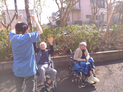 ハンカチや銭太鼓を使って体操を行い、大きなイベントごとに御家族様や近隣の方に披露しています。