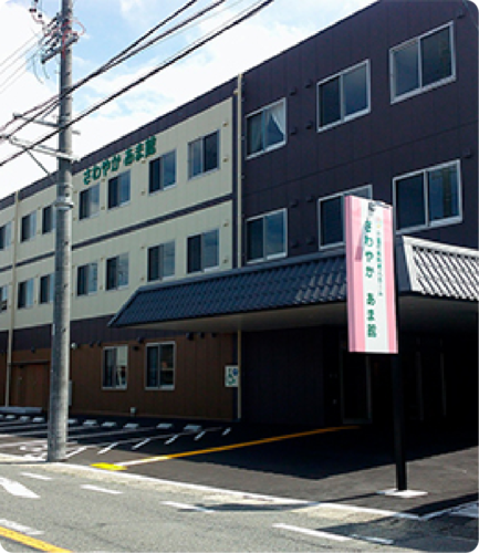 この度、さわやかあま館の副施設長をさせて頂くことになりました佐久間です。建物は3階建てとなっており、居住スペースが広く館内も明るい設計にし、四季折々のレクリエーションをはじめリハビリにも力を入れていく予定で、より楽しく元気に生活してもらえる環境を整えていきます。近くにお越しの際は是非お気軽にお立ち寄り下さい。職員一同お待ちしております。
